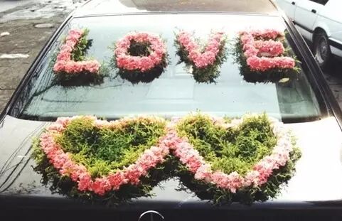车顶的装饰要根据整体婚车的造型和色彩来定。可以铺满大朵的鲜花,也可以依然用玩偶。大片鲜花会给人以一种热闹喜庆的感觉,但是花一定要新鲜,如果有枯黄看上去可就不太吉利了。花朵可以选择二寓意比较好的花朵,比如红玫瑰(象征爱情)、百合花(象征百年好合)、天堂鸟(象征比翼双飞)。